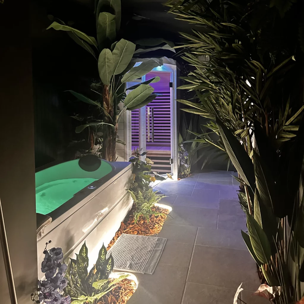 Parfait pour un week-end original, une escapade romantique ou une surprise inoubliable, l’Appartement Jungle mêle décoration végétale, mobilier naturel, lumières tamisées, sauna, baignoire balnéo et détails exotiques pour créer une véritable bulle hors du temps.